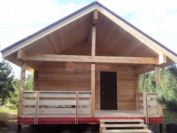 Такая одноэтажная баня 5х9 может быть построена из бруса. Ориентировочный срок строительства 23 дней.