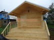 На террасе при условии что она есть делаем перила из строганной доски со всех сторон, столбы террасные также строганные, а не обрезки профилированного бруса с шипом и пазом. Домкратики на столбах для дальнейшей регулировки. Балясины будут сделаны аккуратно. Обратите внимание что в дешёвых случаях это может быть и будет просто вагонка прибирая к неотесанной доске снаружи и столбы будут не квадратные а просто профилированный брус как на видео.