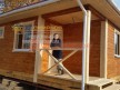 На террасе при условии что она есть делаем перила из строганной доски со всех сторон, столбы террасные также строганные, а не обрезки профилированного бруса с шипом и пазом. Домкратики на столбах для дальнейшей регулировки. Балясины будут сделаны аккуратно. Обратите внимание что в дешёвых случаях это может быть и будет просто вагонка прибирая к неотесанной доске снаружи и столбы будут не квадратные а просто профилированный брус как на видео.