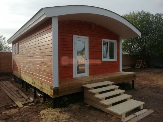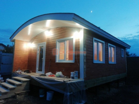 Такая одноэтажная баня 5.3х8 может быть построена из бруса. Ориентировочный срок строительства 31 дней.