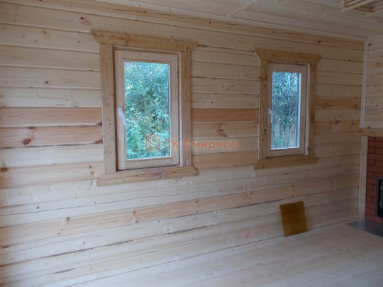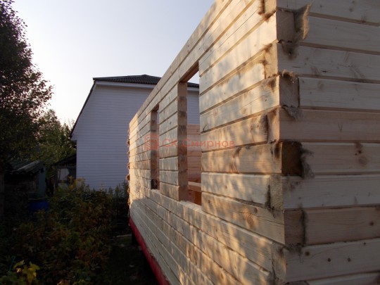 Обязательный элемент брусового дома или бани, это брусок в пиленный в брус в проем двери или окна не менее 50х50мм. Обязательно должен оставаться зазор сверху на усадку и этот брусок не должен быть жёстко закреплен в проеме. В некоторых случаях внутри помещения ставим металлические ройки, уточняйте. Посмотрите отрывок видео как могут повести себя стены