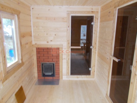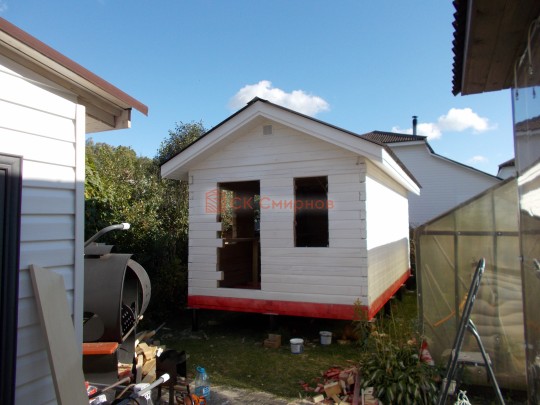 Объект был построен за 10 дней, включая установку свайно-винтового фундамента и полную отделку бани снаружи и внутри под ключ. Особенность наших работ в том, что после отъезда бригады с участки ничего не нужно доделывать. В бане уже есть печь, свет, подведена вода.