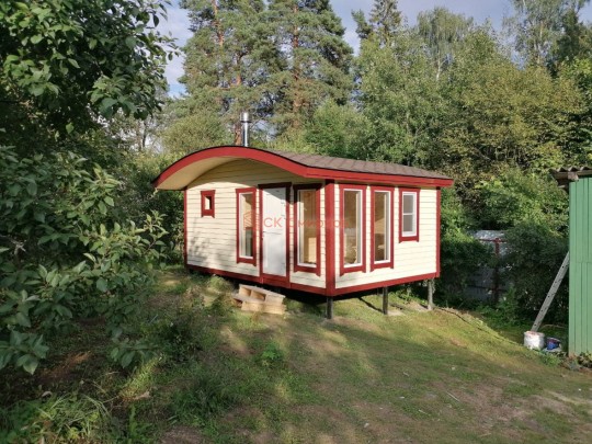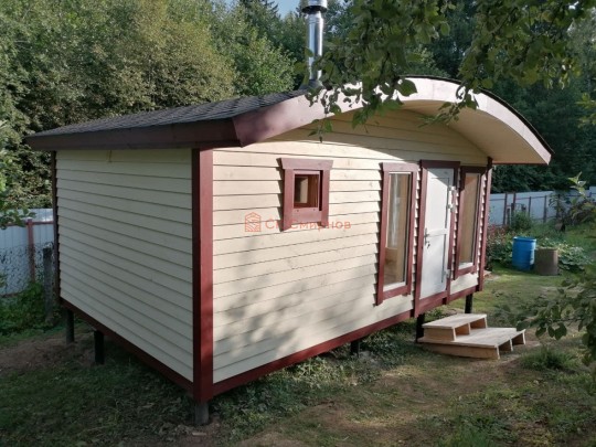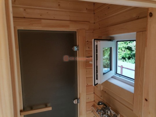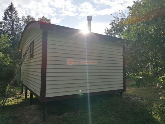 Размер 5,3 на 6 метров. Внутри 4 помещения: комната отдыха, парная, душ и санузел, где размещается душевая система. Ориентировочный срок строительства 10 дней.