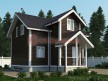 На фото представлен проект недорогого дома №167 габаритами 8х9 метров и отличной планировкой общей площадью 115 квадратных метров. Можно выделить несколько особенностей проекта: эркер, туалет, ванная, санузел, котельная. Сруб с мансардой, может использоваться как зимний, для постоянного проживания, коттедж.