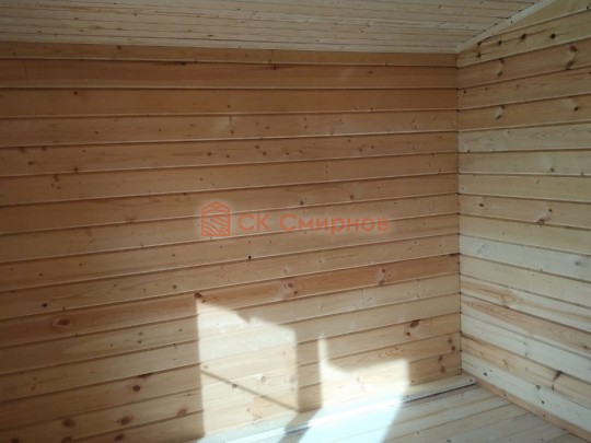 Сруб дома собран из профилированного клееного бруса 140х140. Мы в СК Смирнов используем улучшенный финский профиль с наплывом, который обеспечивает максимально герметичное соединение и предотвращает появление щелей между венцами в ходе усадки. Брус очень высокого качества без сколов и трещин. Ламели склеены профессиональным клеем KIILTO производства Финляндии.