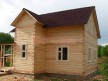 Из профилированного сухого бруса 9х14см, 14х14 см или 14х19 см. Сборка сруба в теплый угол на нагеля или гвозди 200 мм со сверлением отверстия в верхнем брусе (в зависимости от вида бруса).