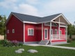 Проект адаптирован под строительство по каркасной технологии. Материал наружной отделки на выбор заказчика. Это может быть сухая доска, блокхаус, имитация бруса, сайдинг и пр. В осное лежит мощный брусовый каркас с утеплением в летнем или зимнем варианте.